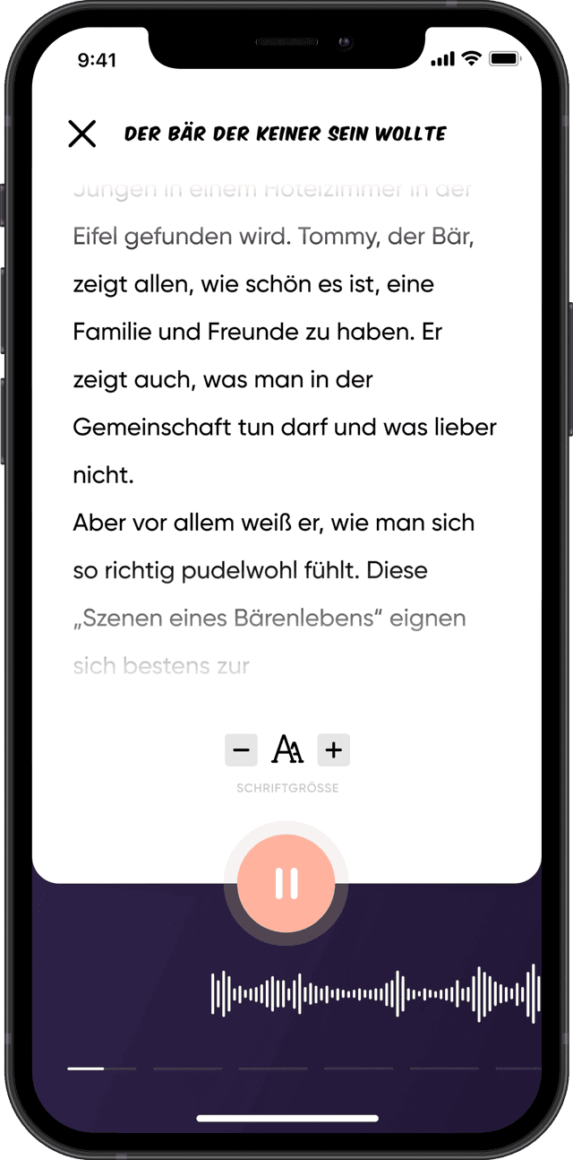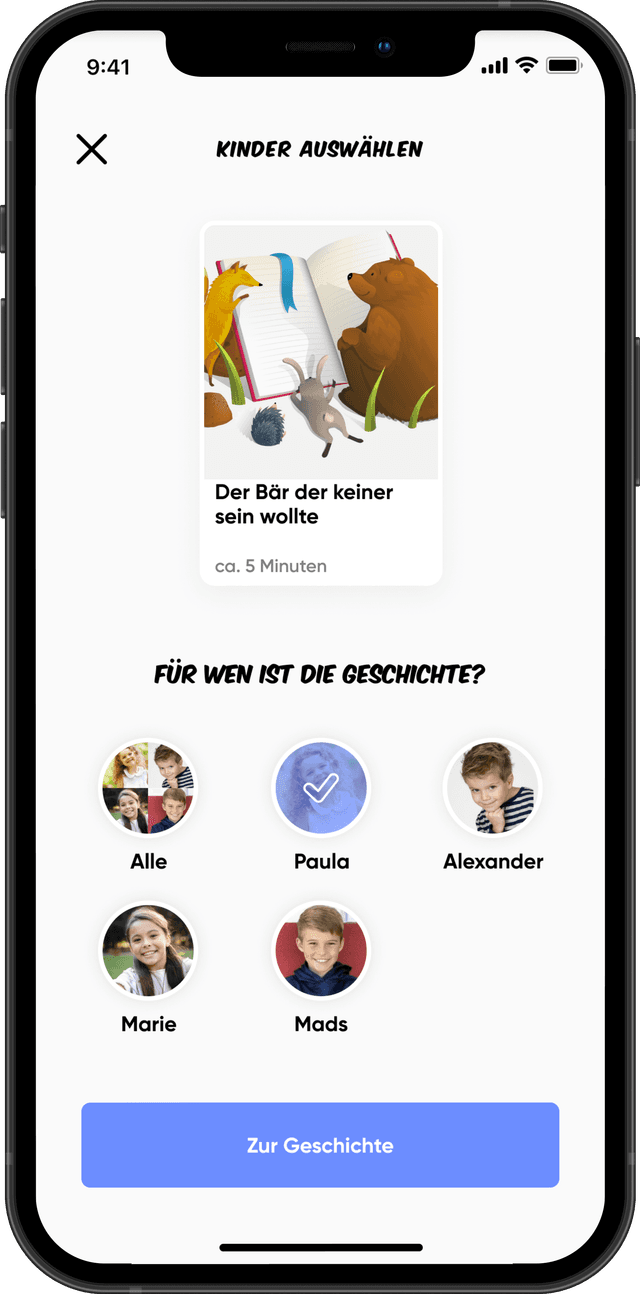 Öffne die App und wähle eine Geschichte aus unserem Geschichten-Katalog oder wähle dein eigenes Lieblingsbuch.